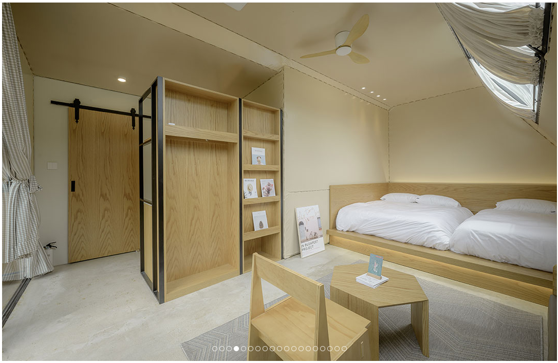 글램핑 숙소라고 보기 어려울 만큼 장 정돈된 실내 인테리어와