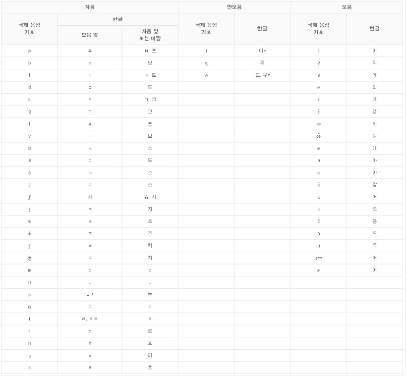 또한 국제음성기호와 한글 대조표에 따르면